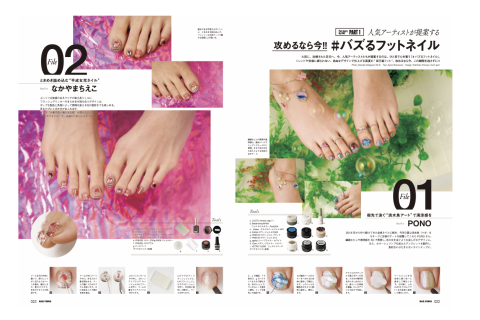 巻頭特集「#バズるフットネイル最新版 Pure luxury. My FOOT.」では、人気アーティストによる最旬のフットアートや、人気ブランドの神アイテムを使った「#バズるフットアート」の提案に加え、今シーズン欠かせないワンランク上のフットケア、編集部厳選の「フット系アイテム指名買いLIST」などをラインナップ。